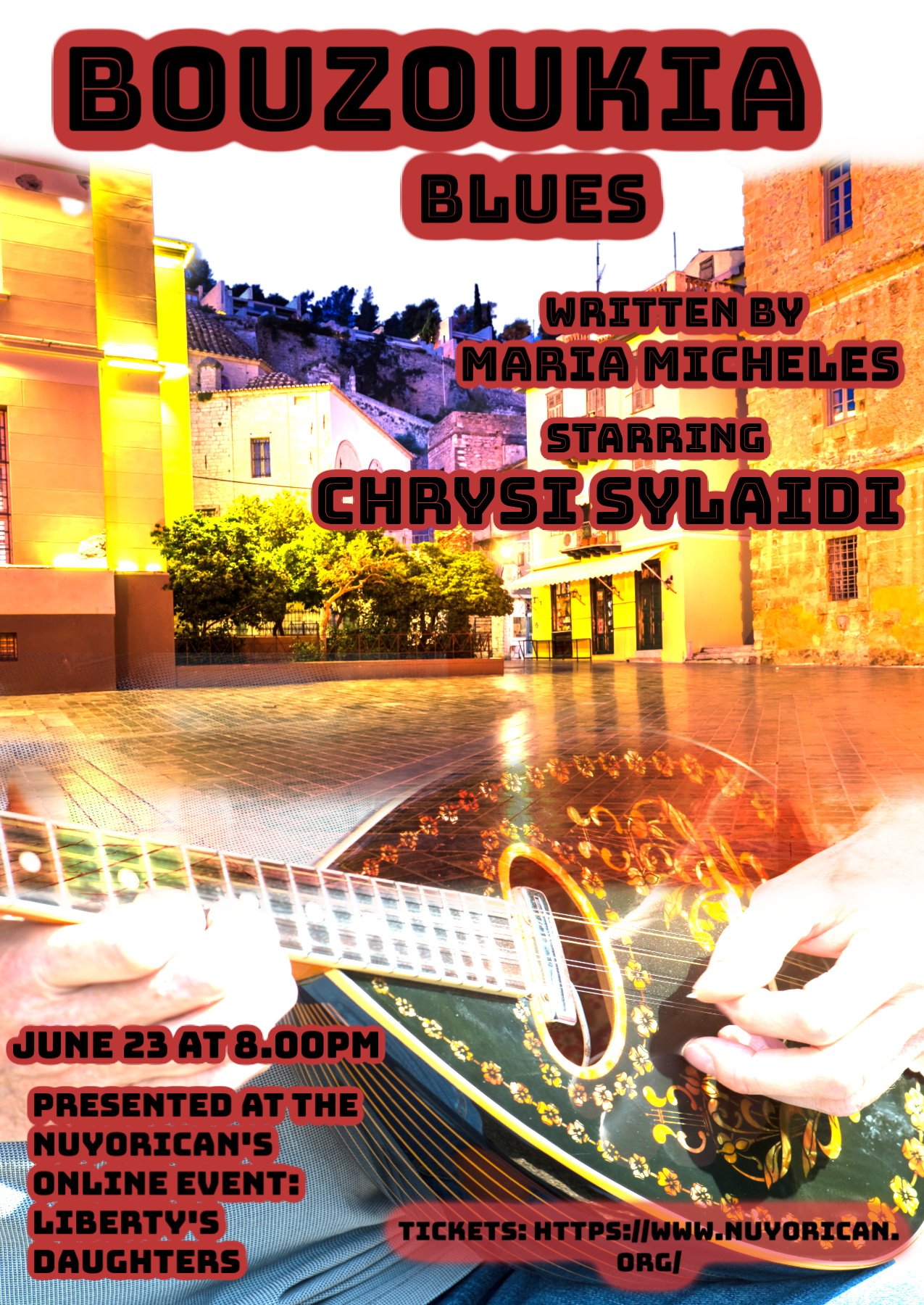 “Bouzoukia Blues,” part of an evening of Immigrant Women’s Monologues written by playwrights across borders, ages, and genders hosted and curated by Saviana Stanescu entitled Liberty’s Daughters, premiered in June and can now be seen worldwide.