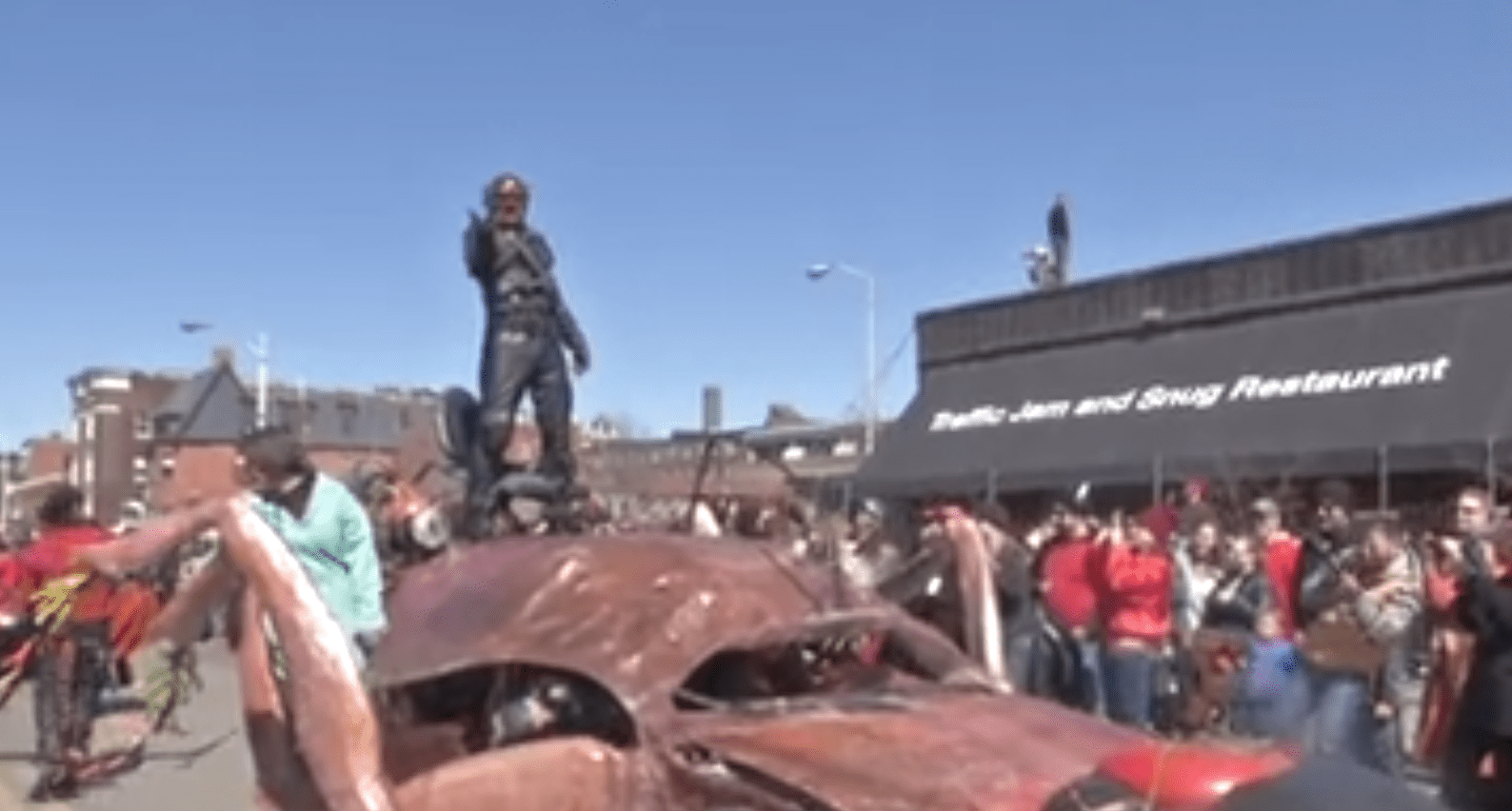 Jeremiah Kipp’s The Nain Rouge Murders (filmed during pandemic, 2020) is a short news report/documentary style film exploring a demon that appears during a parade in Detroit. The Nain Rouge or Red Dwarf appears at the time of this maigre gras style parade and people disappear. As many as 4000 according to “the facts.”