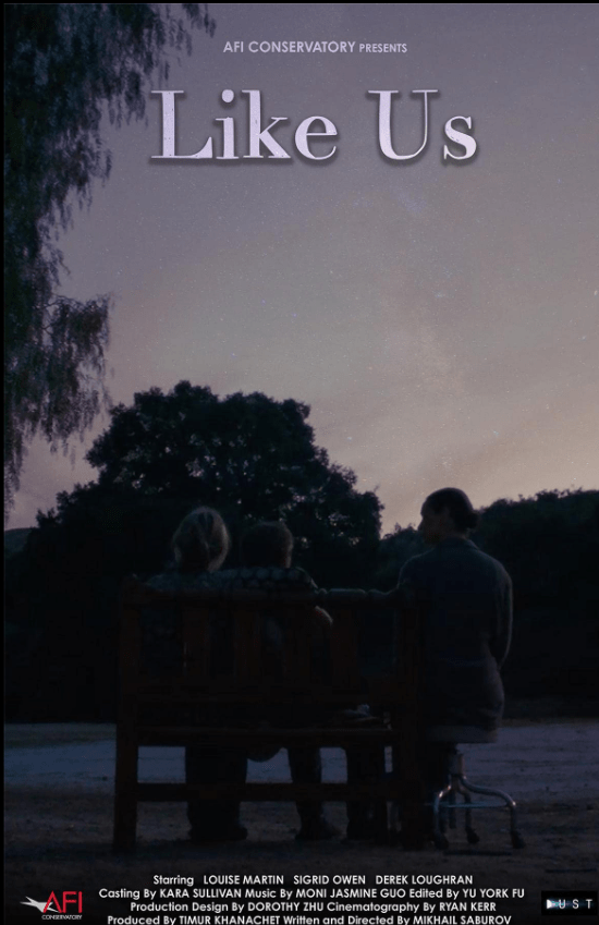 Like Us was written and directed by insightful filmmaker Mikhail Saburov. Originally from Russia he settled in the U.S. where his films have been racking up awards at film festivals. His innovative exploration of the human condition made for a compelling short film. Mr. Saburov took the audience along for the emotional journey with some especially jarring sequences. The cinematography, lighting and set design complimented the storytelling. Warm tones were used to echo the warmth that Kathie felt for Jim. Louise Martin as Kathie, Sigrid Owen as Rogl and Derek Loughran as Jim all did an exceptional job of stepping into their characters. Louise Martin and Sigrid Owen had wonderful on-screen chemistry and were well suited for their roles. Derek Loughran didn’t move or have any lines but his expressive face let you know that his character Jim was there taking it all in. If you’re looking for a lovey-dovey-touchy-feely E.T. phone home type of film, this isn’t it. If you’re looking for an intelligently made gripping piece of art having to do with the complexities of emotions and the implications of love, you are sure to like, Like Us.